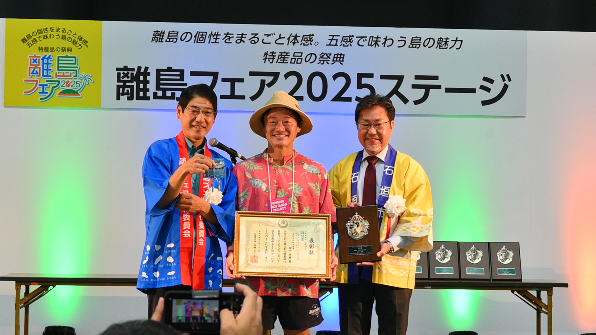 去る11月21日から23日に開催された「離島フェア2025」。沖縄の離島の宝が集まるこの大舞台のオープニングセレモニーにて、弊社から出品した作品が栄えある賞をいただきました。
